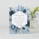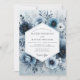 A romantic and ethereal design featuring a watercolor-style arrangement of dusty blue and deep indigo blossoms. Delicate foliage intertwines with the lush floral elements, creating a dreamy and elegant atmosphere for your special occasion. The overall palette evokes a serene and sophisticated feel.