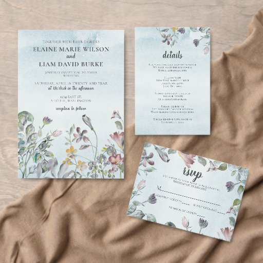Dusty Blue Floral Spring Wedding Invitations SetCriado por Maria G