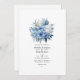 Convite de casamento floral azul Dusty. Ideal para um casamento no jardim. O código QR no verso direciona para o seu local de casamento onde o pessoas pode aprender mais e rsvp