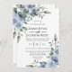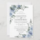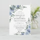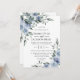 O design de convite apresenta rosas de aquarela e verde-luxuoso. O azul empoeirado é projetado para apresentar várias tonalidades dessa popular cor de casamento em cada flor. Adicione um fundo ou cor colorido ao seu texto também.