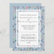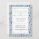 O convite elegante, moderno e muito na moda do WEDDING mostra um padrão floral de aquarela com fundo DUSKY BLUE. O verso das Escrituras vem de Mark 10:8. Personalize seus detalhes na frente. O inverso é um plano de fundo BRUTO DE DUSTY com texto PERSONALIZÁVEL para que você adicione o local de serviço e os detalhes de recepção. Parte da coleção BLUE FLORAL DUSKY por Designs Bereanos.
