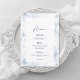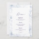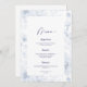 Add a touch of timeless elegance to your wedding table with this Dusty Blue Floral Menu Card. Featuring soft watercolor blooms in serene blue tones and classic serif typography, this menu perfectly complements romantic and refined wedding themes. Ideal for displaying your delicious offerings and elevating your table setting with a graceful detail.