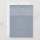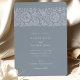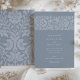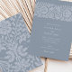 Este elegante convite de casamento apresenta um fundo azul sujento e poeirento com padrões florais complexos em tons compatíveis, criando um olhar refinado e sofisticado. A frente do convite é enfeitiçada com um motif floral belamente detalhado, complementado por uma tipografia elegante que apresenta os detalhes do casamento em estilo clássico. As costas continuam o tema floral, oferecendo um design harmonioso e sem descontinuidades. Perfeito para casais que buscam uma estética moderna, mas eterno, a paleta de cores suave e muda deste convite adiciona um toque de elegância subestimada, fazer ideal para casamentos formais e românticos.