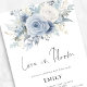 Florais Azuis Dusty amam em Chá de panela de Sangue. Disponível digitalmente e impresso. Os florais elegantes, azuis e brancos, fluem do topo. O amor no Bloom está em um roteiro de estilo de escrita manual. Personalize facilmente o resto do texto para seus próprios detalhes.