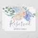 Este símbolo de casamento "reservado" de florais azuis é perfeito para um casamento de primavera ou verão. A placa tem dois lados (impressões em ambos os lados). O design da delicada apresenta peônias azuis leves, organizadas com pessegueiros e flores cremosas em um buquê lindo. Use estes cartões para reservar cadeiras ou mesas na cerimônia de casamento, recepção ou qualquer evento.