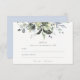 Este design apresenta flores azuis empoeiradas e folhas de eucalipto em tons de verde.