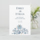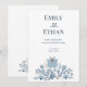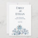 Convites Dusty Blue Folk Floral Wedding Invitation