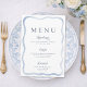 Elevate your wedding reception with this elegant Dusty Blue French Estate Menu Card featuring a soft watercolor frame and refined serif typography. Designed for classic black-tie and fine art weddings, this menu complements French country, Hudson Valley, and estate-style celebrations.