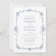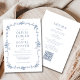 Este elegante convite inspirado no Vitoriano, tudo em um, apresenta uma estética francesa vintage numa paleta azul eterno. Completado com um monograma refinado e código QR integrado, ele reúne encanto clássico e conveniência moderna para um anúncio de casamento verdadeiramente sofisticado.