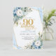 Convites Dusty blue gold script frame modern 90th birthday