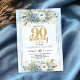 Convites Dusty Blue Gold Sparkle Elegant 90th Birthday