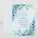 This artwork features a soft watercolor wash in shades of dusty blue and sage green. Delicate hanging wisteria and trailing leafy vines create an ethereal and romantic atmosphere. The airy botanical aesthetic is perfect for a spring or summer event, highlighting a serene and graceful nature-inspired palette.