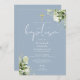 Convites Dusty Blue Greenery Monograma Floral Batismo