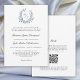 Um convite formal para o casamento com um toque pessoal e algo azul, esta simples design moderna mostra uma crista de casamento com folhas em azul empoeirado em volta das iniciais da noiva e do monograma do noivo. Com simplicidade clássica e um formato prático, tudo em um, este design apresenta uma bela fonte de script para os nomes da noiva e do noivo e a fonte de serifa tradicional para o texto de detalhes. A crista botânica única acrescenta a quantidade certa de cor e detalhes ao design simples e mínimo. Você pode adicionar, remover ou ajustar o posicionamento do texto de acordo com as suas necessidades. O popular fundo branco soma-se à simplicidade limpa deste design. O verso do convite tem uma modelo para incluir detalhes para seus convidados, informações de RSVP e um código de QR para se conectar diretamente ao seu site de casamento. Ele fornece uma maneira eficiente e econômica de receber respostas de RSVP e fornecer aos seus convidados todas as informações necessárias para planejar o seu casamento.