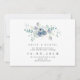 Um convite elegante para informar seus convidados sobre sua nova data de casamento. Este design apresenta um buquê de flores e folhas azuis empoeiradas e lilases aquáticas. O reverso está em azul sólido empoeirado.