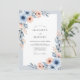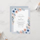 This design features a soft watercolor palette of dusty blue and peach tones. Elegant blue anemones and peach blossoms are nestled among muted slate foliage to create a romantic, airy feel. The luminous floral arrangement provides a whimsical, hand-painted aesthetic that is ideal for a spring event.