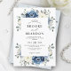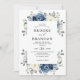 Convite para o casamento floral azul empoeirado, com buquê elegante de azul marinho, azul real, branco, ouro, marfim de champanhe, rosa de cor esbranquiçada, botões de flor ranunculus e folhas de eucalipto verde-sábio e buquê de cor d'água elegante. Entre em contato comigo para obter ajuda sobre a personalização ou se você precisar de outro produto com este design.