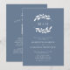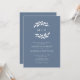 Bolsa Azul Dusty Monograma Wreath Wreath Convite... Nosso convite de casamento de dois lados apresenta uma coroa branca de monograma da silhueta de ramos de oliveira em um fundo azul tendencioso seguido de um convite em serifa elegante e tipografia sans serif. Salve o papel, incluindo o código QR do seu site de casamento no verso do convite, permitindo que seus convidados RSVP online e vejam todos os detalhes normalmente enviados em cartões separados no pacote de casamento. O exemplo de código QR do site de casamento e o texto do convite podem ser facilmente revisados com seus próprios detalhes usando o modelo de personalização.