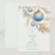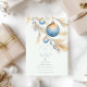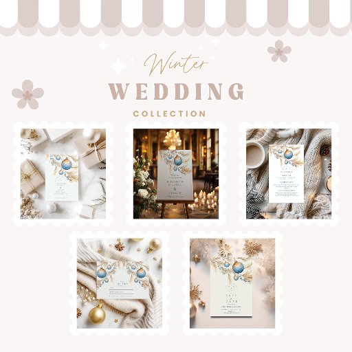 Um design mínimo, mas elegante, com fosco azul de Natal pendurado em galhos de pinheiro de ouro macio. A vintage paleta de inverno e os detalhes gentis da aquarela criam um humor de casamento refinado e romântico de feriados com uma reviravolta boho.