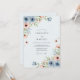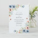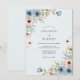 This botanical design features a soft palette of dusty blue and peach watercolor blooms. Delicate anemones and roses are nestled among sage green foliage, creating a serene and airy atmosphere. The arrangement flows gracefully across the surface, offering an elegant aesthetic for a spring or summer ceremony. This romantic floral theme brings a touch of nature-inspired beauty to your special day.