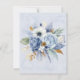 Design apresenta um elemento floral impresso em tons de azul empoeirado e ouro sobre folhas verdes e floradas de pedras e rosa. Excelente para as comemorações do casamento!