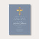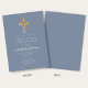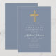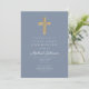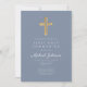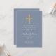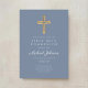 Personalized Dusty Blue Cross Religious Boy First Communion Invitation. Part of the Dusty Blue Script Cross Boy First Communion Suite with matching stationery and party accessories available.