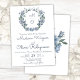 Convites Dusty Blue Romantic Floral Wreath Weds
