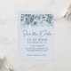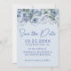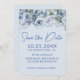 Flórida romântica azul empoeirada no floral azul claro Salve o cartão de Data. Personalize nomes, datas e informações.