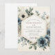 Experience a serene and romantic atmosphere with this elegant floral composition. The sophisticated palette showcases dusty slate blue, soft sage green, and creamy ivory hues. Delicate white anemones with dark centers are nestled amongst lush blue blossoms and muted foliage, creating a timeless, artistic design.
