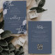 Este elegante convite de casamento apresenta buquês florais azuis empoeirados saltados com folha verde prateada em dois cantos, num fundo azul empoeirado. O texto personalizável combina fontes de cinza prateada se, itálico e de escrita manual. O verso fornece espaço para detalhes do casamento em um fundo azul empoeirado sólido, junto com um código QR que os convidados podem digitalizar para visitar seu site e RSVP, o que economiza o custo de imprimir e enviar cartões RSVP separados.