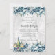 Uma ilustração delicada de aquarela com um buquê de rosas azuis empoeirados e peões azuis claros, amarrados elegantemente com fio rústico. O buquê é acentuado com sutil brilho prateado, acrescentando um toque de sofisticação e charme. A composição geral é colocada sobre um fundo branco puro, enfatizando as tons macios e românticas de azul empoeirado. O fundo é constituído por uma folha de gradiente branco sobre a cintilação prateada. Perfeito para casamentos!