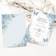 O convite perfeito para o doce 16 da sua filha está finalmente aqui! Este convite apresenta elegantes rosas azuis empoeirados de cor d'água, borboletas doces e prata geométrica moderna. Clique no botão "personalizar mais" se quiser reorganizar e formatar o estilo e a posição do texto.
