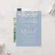 Convites Dusty Blue String Lights Script Foto de Casamento