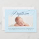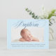 Convites Dusty Blue Subtle Cross Script Foto do Batismo