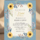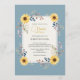 Convites Dusty Blue Sunflower Bridal Shower Gold Frame