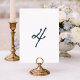 Featuring a hand-drawn navy “4” on a clean white front, this table number blends artistic softness with modern sophistication. The reverse side showcases delicate watercolor French stripes in dusty blue, creating a cohesive and refined look from every angle.