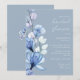 Este elegante convite para o chuveiro floral transparente, azul e empoeirado pode ser personalizado com suas informações em tipografia quic com seu monograma no verso. Projetado por Thisnotme©
