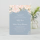 Faça o tom do seu casamento azul empoeirado com este convite elegante com sotaques florais cor-de-rosa pincelados e detalhes delicados de aquarela. Projetada com uma bela escrita caligráfica, uma tipografia refinada e uma luxuosa folhagem botânica, esta modelo combina romance com sofisticação. Perfeito para casais planejando uma celebração clássica e formal, este design capta a beleza do eterno enquanto oferece uma maneira na moda de convidar os entes queridos para o seu dia especial.