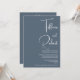 Ponha o tom para seu dia especial com o Convite de Casamento Azul. Apresentando um fundo azul poeirento e sereno com uma elegante carta branca, este convite mostra lindamente os nomes dos casais, a data do casamento e o local da frente. O verso fornece detalhes adicionais para seus convidados, mantendo tudo organizado e na moda. Perfeito para casamentos modernos, clássicos ou românticos, este convite traz uma sensação sofisticada e eterno à sua papelaria de casamento.