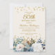 Convites Dusty Blue White Floral Dourado 50º aniversário