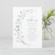 Flores silvestres de cor aquática delicadas e elegantes, ao lado de seus detalhes de evento em azul empoeirado. Paletas de pastel de amarelo macio, branco esbranquiçado, verde-sábio, azul empoeirado, verde botânico e verde botânico, simples e romântico. Excelente floral Baby Shower convites para festa rústica moderna, festa de jardim boho country em primavera e verão.
