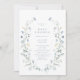 Uma delicada e elegante cor d'água, moldura de flor silvestre, enrola seus detalhes de evento em azul empoeirado. Paletas de pastel de amarelo macio, branco esbranquiçado, verde-sábio, azul empoeirado, verde botânico e verde botânico, Excelente floral Baby Shower convites para festa rústica moderna, festa de jardim boho no primavera e verão.