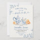 Convites Dusty Bue Chinoiserie Chá de panela Tea Party