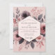 Evoke a sense of moody romance with this elegant design. A stunning arrangement of dusty mauve and charcoal grey peonies and roses blooms softly against a pale blush background. Delicate leaves and budding stems intertwine, creating a beautiful composition with a soft, hazy quality. This artful botanical display is perfect for a sophisticated matrimonial event.