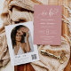 Este convite apresenta uma elegante caligrafia "nós fazemos" e uma simples fonte de tipografia serif com uma fotografia em forma de arco e um código QR num fundo cor-de-rosa empoeirado. A simplicidade e a design limpa deste convite funciona bem com todos os temas de casamento e definitivamente uma adição excelente ao seu casamento. Tente se tornar ecológico com este convite moderno, tudo em um, ecológico, reduzindo o RSVP adicional e os cartões de detalhes. Basta adicionar seu próprio código QR à parte traseira do convite para seus convidados para RSVP e descobrir mais informações sobre seu casamento. Personalize os nomes e o texto em apenas alguns passos fáceis e personalize o cartão de convite com sua foto do casal feliz para lhe dar um toque exclusivo e pessoal. Note-se que a elegante caligrafia dos termos "Fazemos", "Jantar e dançar para seguir" e "detalhes + rsvp", trabalho de arte gráfico, e outros elementos gráficos, não pode ser editada, eliminada ou movida. Eles estão consertados. Se precisar alterar a cor, você pode personalizar o cartão de convite. Você pode personalizar e personalizar o convite para ajustado das suas necessidades de evento de casamento e clicar em personalizar o convite. Você pode personalizar facilmente este convite com seu próprio texto e compartilhá-lo com seus convidados digitalmente — seja através de texto, email ou mídia social. Se preferir, você também tem a opção de enviar uma versão impressa para seus convidados. Ou, você pode fazer ambos — enviar uma versão digital e acompanhar com uma cópia impressa para um toque pessoal!