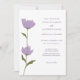 Estes convites para o casamento têm uma aparência simples e moderna, com ilustrações de flores de anêmona em um púrpura leve e poeirento do lado esquerdo e todos os detalhes do seu casamento no lado direito em letras elegantes roxas.