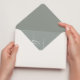Convide os entes queridos para comemorar seu dia especial com este elegante convite de casamento de sábio empoeirado. Apresentando um design minimalista com a escrita moderna e a delicada tipografia, este convite dá o tom de um evento sofisticado e memorável. A cor suave e as linhas limpas adicionam um toque de graça e simplicidade, fazer ideal para uma celebração de na moda. Personalize os detalhes para criar um convite único e bonito para o dia do seu casamento.
