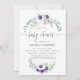 Convites de chá de bebê floral com aquarelas em tons pastéis, com flores de anêmona, eucalipto, ranúculo e suculentos.
