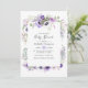 Convite de chá de fraldas floral violeta de Pastel personalizável para suas especificidades. Em destaque estão as papagaias, o eucalipto, o ranúculo e os suculentos.