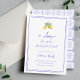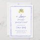 Apresentamos o nosso incrível convite festa de solteira para a celebração do destino final em Itália! Este convite apresenta uma caligrafia azul elegante, perfeitamente aliada a uma pequena ilustração do ramo de limão, criando um design chic sofisticado. O verso do convite inspira-se nos clássicos azulejos azuis italianos, acrescentando um toque extra de elegância e transportando-os para as ruas pitorescas da Itália. Este convite dá o tom a uma experiência festa de solteira inesquecível no belo país da Itália. Quer você esteja planejando uma viagem de fim de semana para o país do vinho ou uma aventura de uma semana nas cidades, este convite é a maneira perfeita de reunir seus amigos mais próximos e celebrar a noiva em estilo.